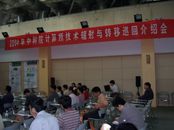 除去实物的演示外,中科院计算所还借此机会在电博会现场举办了计算所技术巡回介绍会。中科院计算所所长常务助理、研究员、博士,神州龙芯总裁唐志敏先生,中科院计算所技术发展部张艳博士为当地的IT产业人士分别带来了有关龙芯技术及技术转移与拆分的专题讲演,随后中心副总经理陈岚博士亦在介绍会上对中心EDA平台做了详尽的介绍。